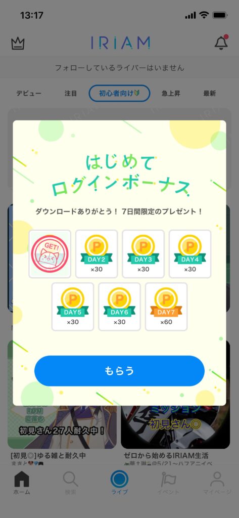 アプリを起動すると表示される以下の画面を3日間スクショしてください!