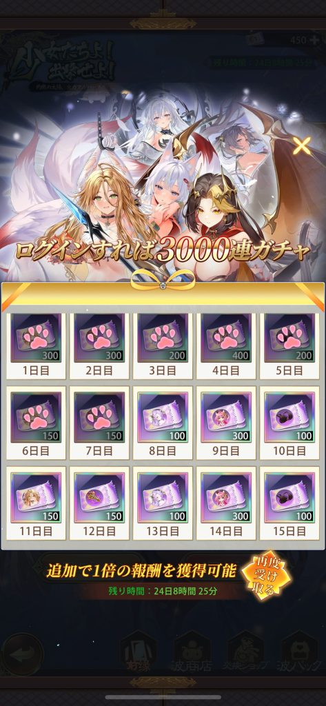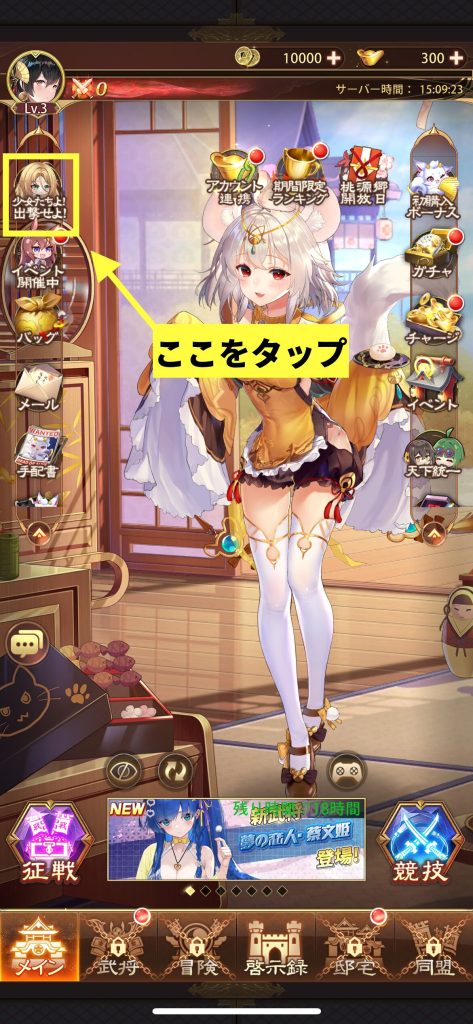 少女廻戦 2024 7/19 スクショする画面の開き方 STEP画面左上のアイコンをタップ STEP「3000連ガチャ」をタップ STEPこの画面を毎日スクショしてください! 「1日目」をタップして報酬を受け取ってからスクショしてください! Screenshot 未分類