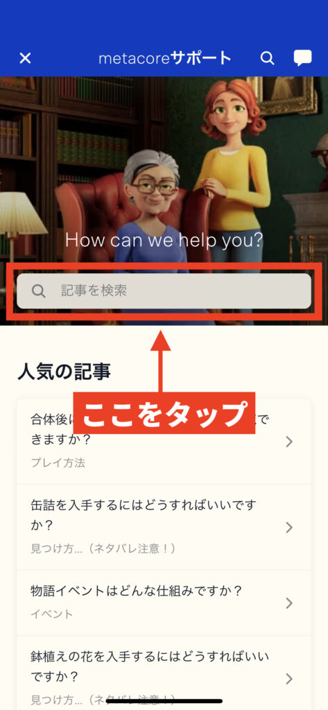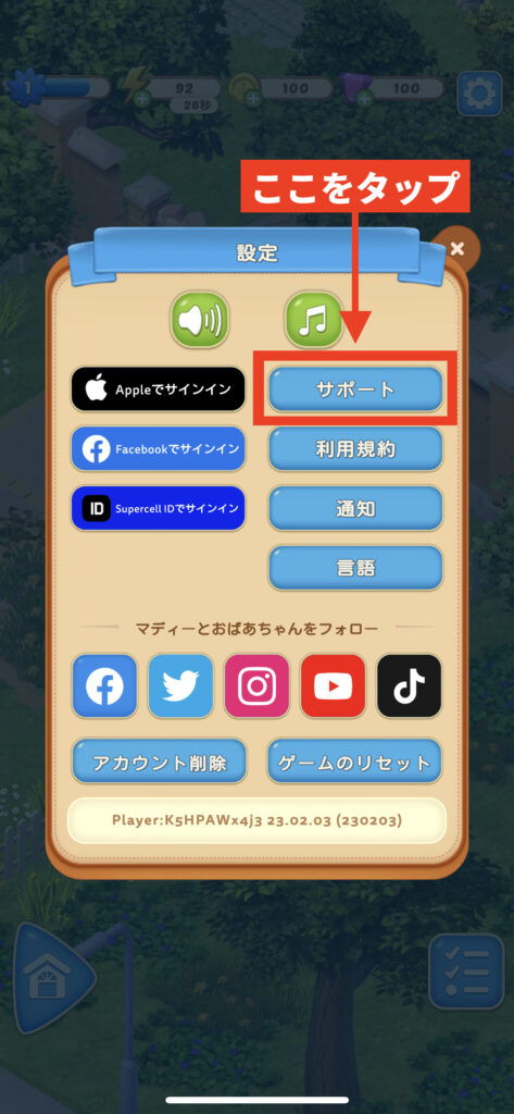 「サポート」をタップ