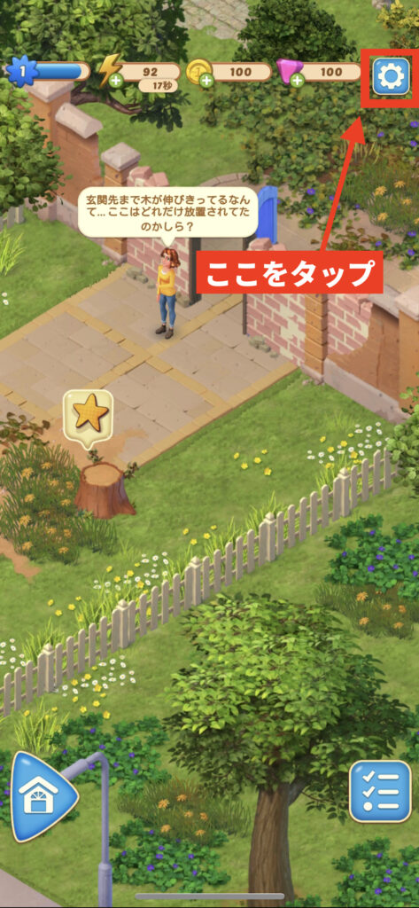 画面右上の「歯車マーク」をタップ