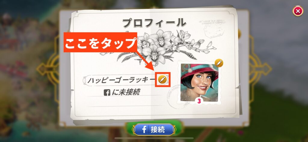 ミステリー探偵ジューン 2024 1/22 スクショする画面の開き方 本作はログイン日数を確認できないため、代わりに以下で解説している画面のスクショをお願いします! STEP画面右上の「歯車マーク」をタップ STEP「ソーシャル」をタップ STEP「プロフィール編集」をタップ STEP「ペンのアイコン」をタップ STEP何日目のログインかを入力 STEPこの画面をスクショしてください! 未分類