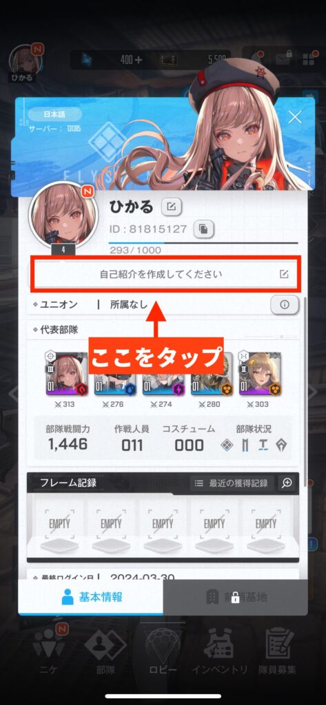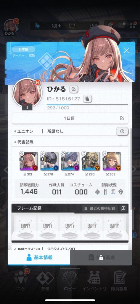 「NIKKE」はログイン日数を確認できないため、代わりに以下で解説している画面のスクショをお願いします!