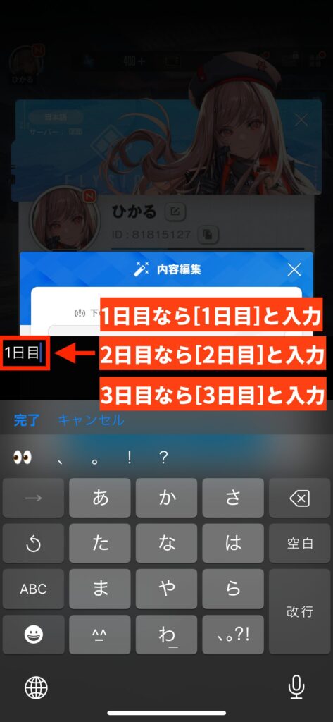 何日目のログインかを入力