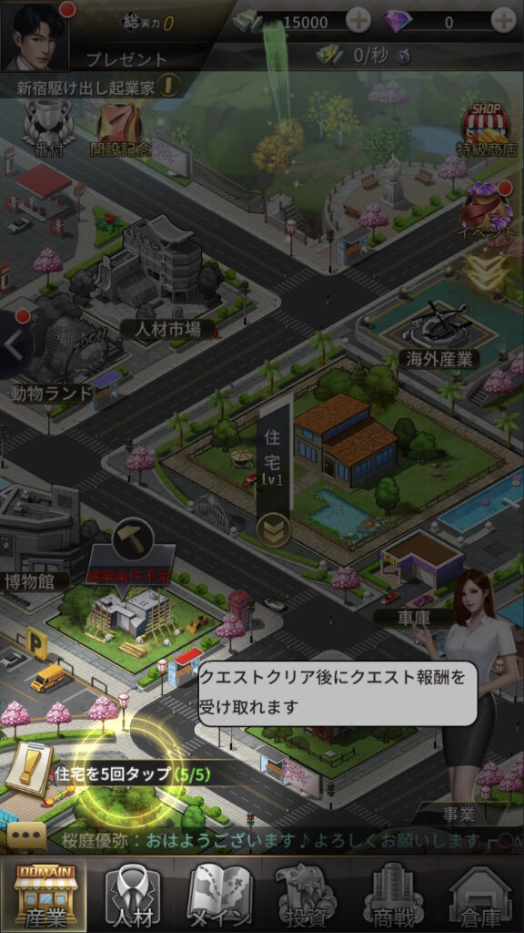 一番最初の「住宅を5回タップ」というタスクが終わればオッケーです!