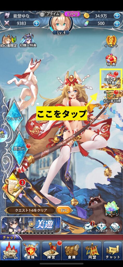 超次元彼女 2024 5/25 スクショする画面の開き方 STEP「ログイン特典」をタップ STEPこの画面を毎日スクショしてください! 報酬を受け取って「チェックマーク」が付いたのを確認してからスクショするようにしてください! 未分類